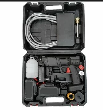 El paquete incluye:1 pistola de limpieza.2 batería de litio.1 cargador.1 expansión tubo.1 tubería de agua de 5m.1 filtro.1 Conector rápido.2 boquillas.1 botella de espuma.